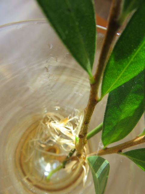 アメリカンブルーを水挿ししたら、すぐに発根しました~。ビックリ☆