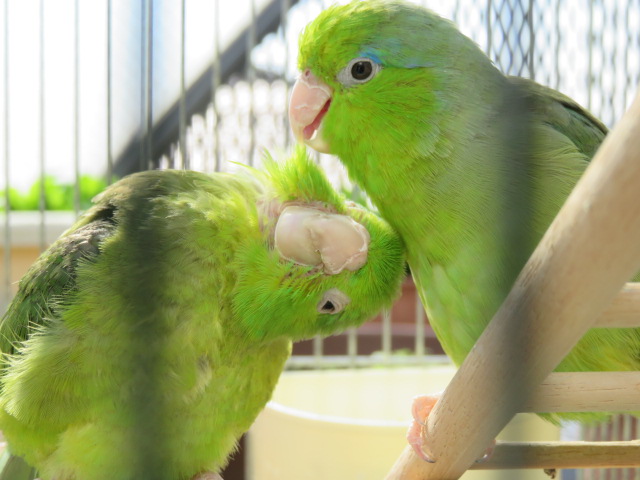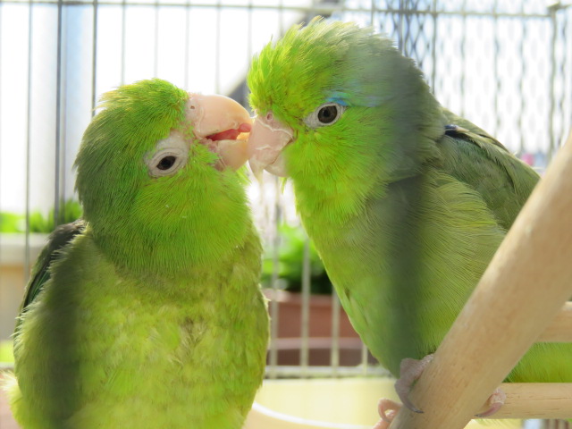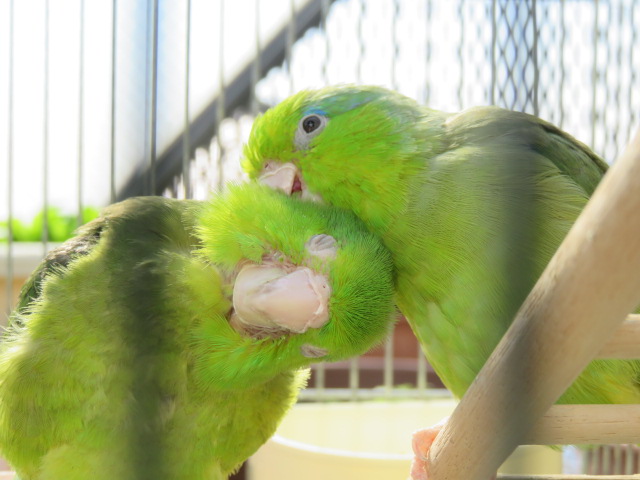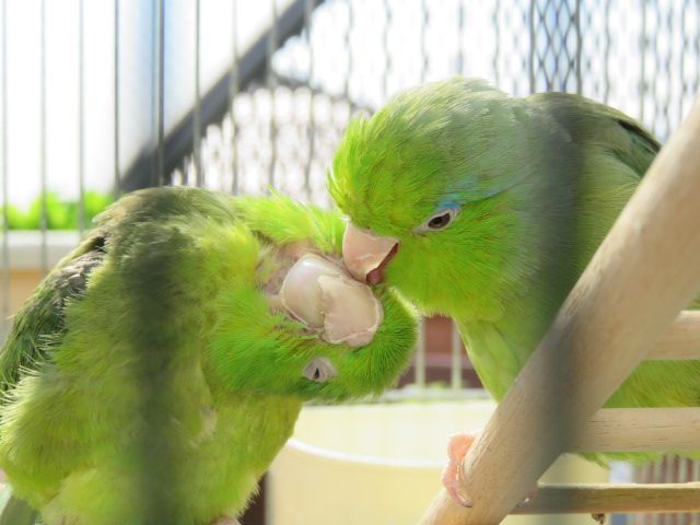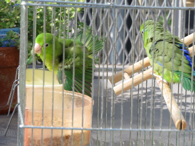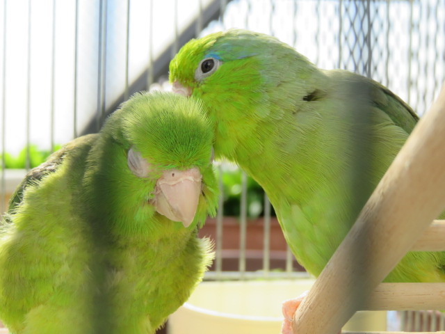 2羽のマメルリハインコの日常やベランダの様子