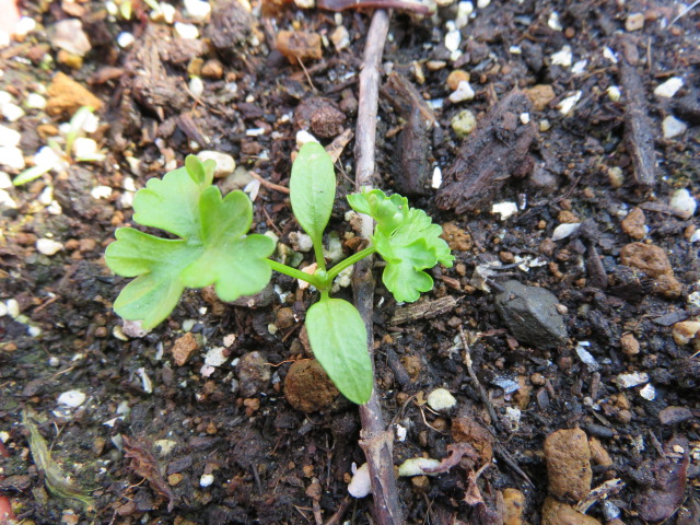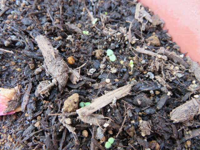 もう死んじゃったであろうスイスチャードの種を、捨てるなら撒いておこうと思って20粒ほど隙間に埋めておいたら1つ発芽していました~♪やった~♪
