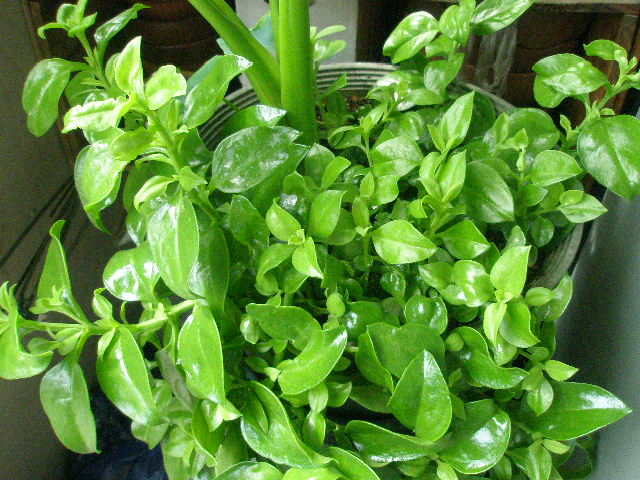 枯れ葉を処分し、日が良く当たるようになった金時草。