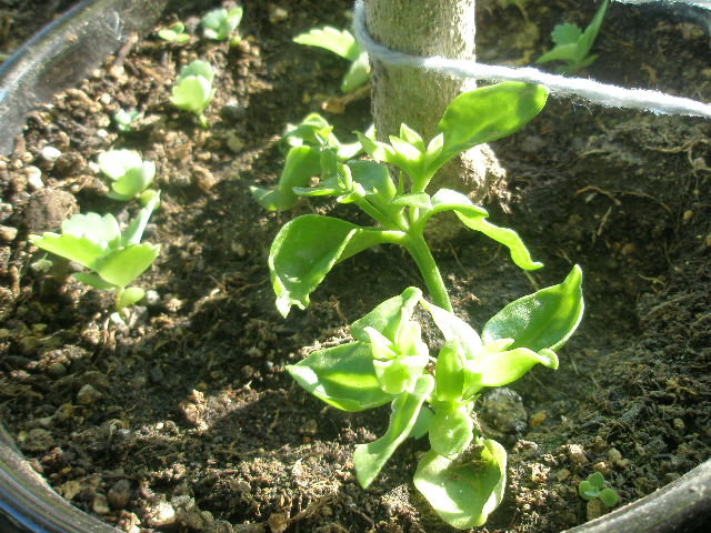 エンジェルストランペットの根元で根付いたベビーサンローズ。