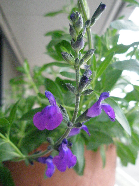 チェリーセージ・サーモンピンクは剪定しちゃったけど、紫色の方はそんなに枝が暴れていなかったのでそのままに。