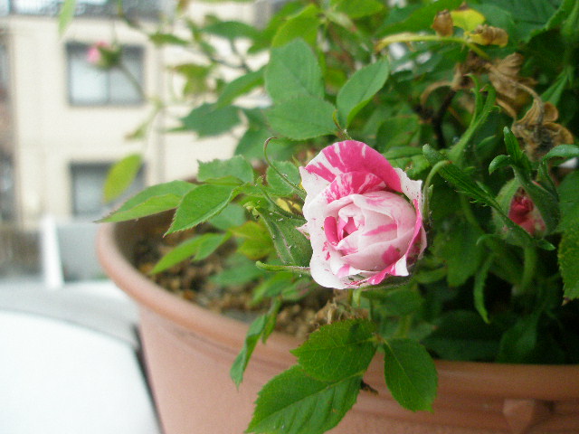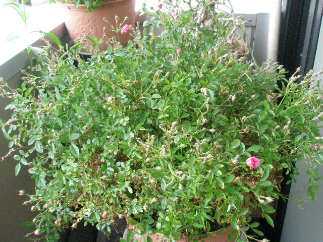 冬は元気だったのに暖かくなった途端ほとんど枯れた100円ミニバラ。