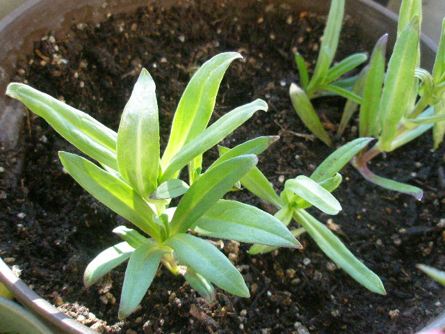 種まきしたガウラ。1株は移植に失敗し枯れましたが、2株は元気!