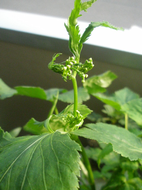 いつの間にか蕾ができていたミツバ。