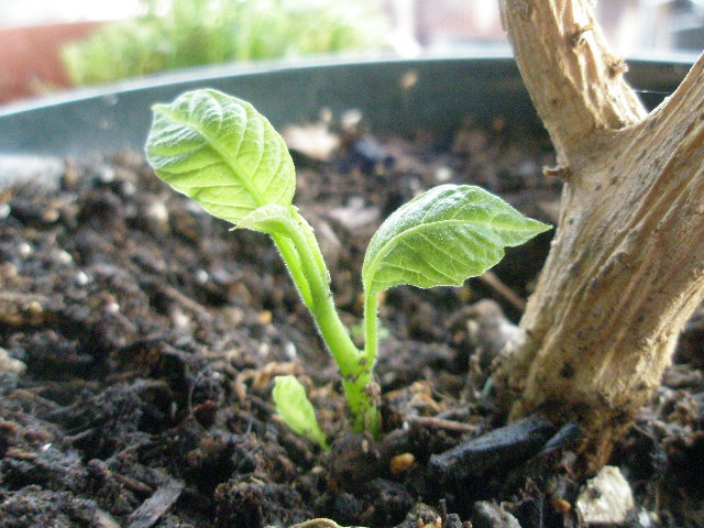 根元から新芽が出てきたエンジェルストランペット。