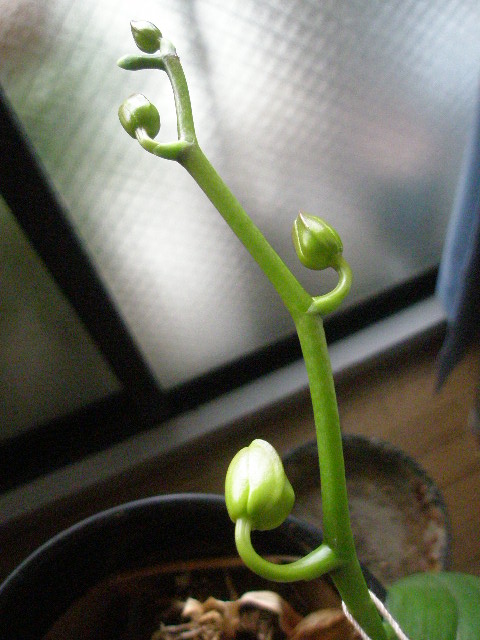 数日前に撮ったコチョウラン。実際はもうちょっと蕾がふっくらとしています。