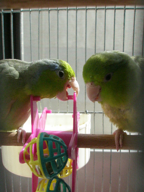 2羽のマメルリハインコの日常やベランダの様子