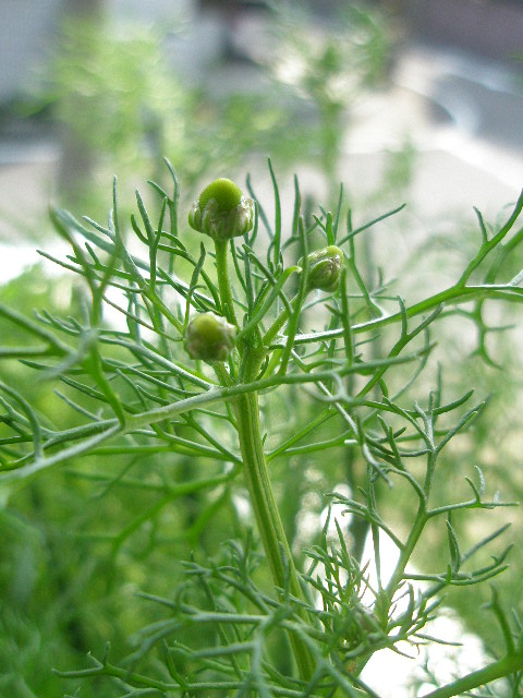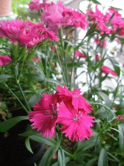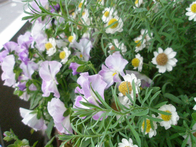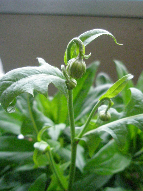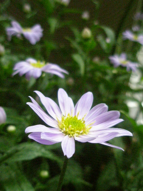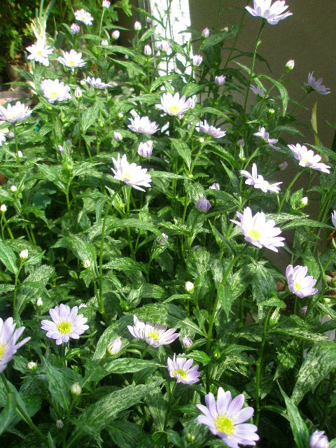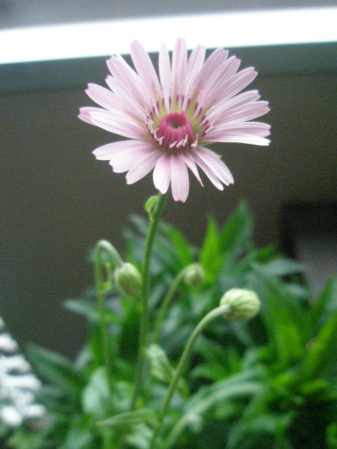 実家から持ち帰った都忘れの置き場所がなく、ベランダ入り口に置いているので出れません。
